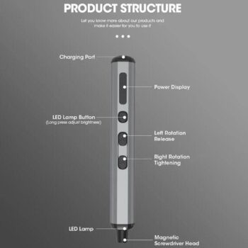 Our electric screwdriver is engineered with top-notch specifications to ensure a seamless repair experience. The 3.7V electric handle provides the perfect balance of power and control, while the rechargeable lithium battery, with a substantial 350mAh capacity, guarantees extended usage time. With a quick charging duration and an impressive 90 minutes of active battery life, your projects will never face unwanted interruptions. The standout feature, electric torque adjustment ranging from 0.15-0.35N.m, allows for impeccable precision, making even the most intricate tasks simple and efficient.